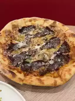 The pizza pizza has a crispy base, and each piece of pizza is filled with lots of beef. It's perfect for fathers who love beef!