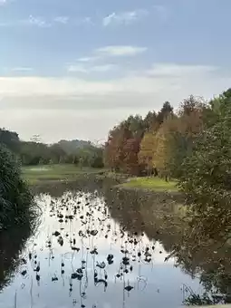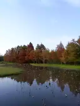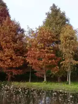 Before the bald cypress leaves turn from green to red, the alternating process presents a stunning golden color that is equally breathtaking. Paired with the smooth pond surface, you can capture the 'Sky Mirror' effect of the bald cypress, creating a beautiful scenery!