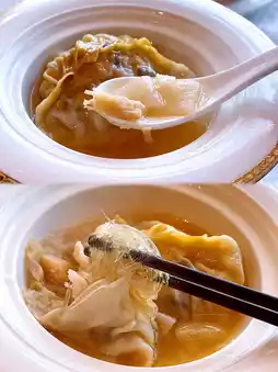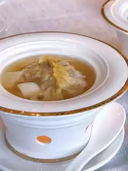 Shark Fin Soup Dumpling🍽️. First, try the soup, which is made with fish maw and dried scallops, giving it a rich flavor🐟. The soup dumpling is very full, with a whole shrimp and a generous amount of shark fin, making it both luxurious and delicious.