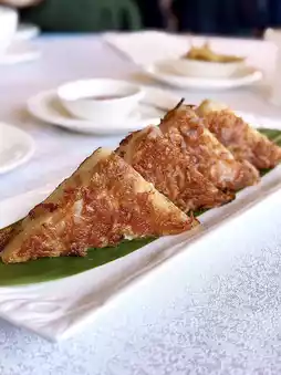 Crispy Laughing Shrimp🍽️. Laughing Shrimp refers to shrimp, as you might have guessed🦐. The rice noodle rolls are wrapped with crispy spring roll skin, making them very crunchy. Each piece contains 2-3 pieces of shrimp, providing a delightful and rich texture.
