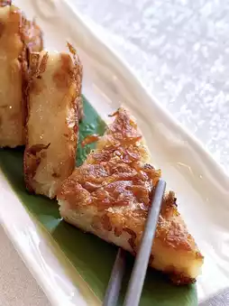Sakura Shrimp Radish Cake🍽️. The radish cake has a soft texture, with a crispy outer layer coated with sakura shrimp, adding a fragrant aroma🥢.