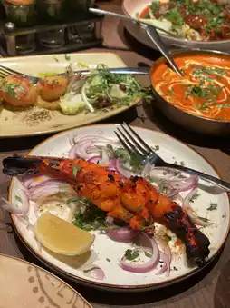Fresh prawns are thick and bouncy, seasoned with yogurt and spicy spices, which enhances the freshness