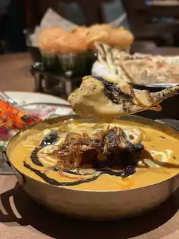 The chicken fillet is slowly stewed with slightly spicy onion sauce and black truffle butter, rich and delicious, creamy, dipped in naan๐ซ to eat very juicy, very good๐