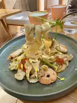 I ordered the lobster sauce with shrimp handmade Italian broadband noodles, the noodles were smoky, the sauce was Creamy, the shrimp was bouncy, plus the salmon caviar and cheese slices with savory flavor, delicious!