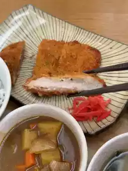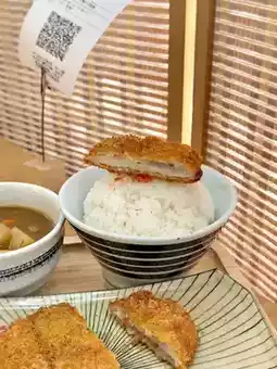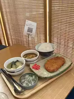 There is hojicha fresh milk for an additional $25 with the meal. The pork chop is fried to a crispy texture, served with curry sauce with rice, it's perfect! It also comes with bean curd soup and mustard octopus, which is very Japanese!
