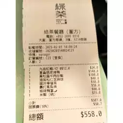 Total price $558 for 2, $24 per person for tea, others have a service charge!
