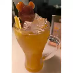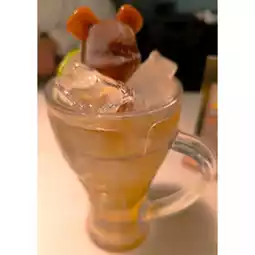 This pineapple tea is a little sweet, with ice in the shape of a bear. You will drink the pineapple pulp with every sip, and it would be better if you reduce the sugar!