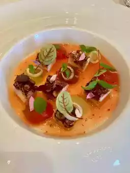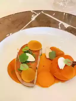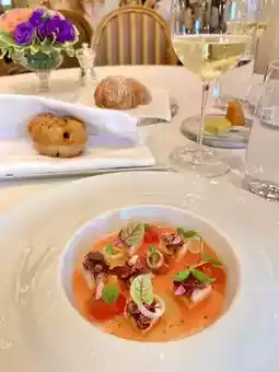 The menu offers a variety of classic French dishes based on fresh seasonal ingredients and paired with exquisite presentation, making each dish both delicious and visually pleasing. The restaurant's wine list is also quite extensive, including a variety of high-quality wines from major French wineries that can perfectly match the dishes.