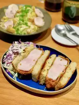 We use high-quality extra-thick-cut American pork, which is slow-cooked at low temperature and then fried. The pink pork retains its gravy and has a crispy outside and tender inside. It is paired with a crispy Italian herb bun full of butter aroma, giving it a rich taste. The side dish also includes salad, which just balances out the greasy feeling of the meat.