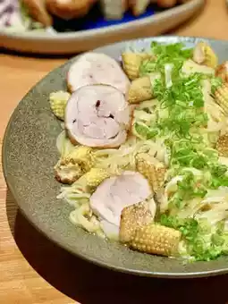 The meat rolls are made with tender and smooth chicken from Hokkaido. The outer layer of the meat rolls is slightly charred, and the meat inside is tender and juicy. The handmade noodles are chewy and springy, and each one is filled with the aroma of kelp and smoked vegetable juice, giving a refreshing feel.
