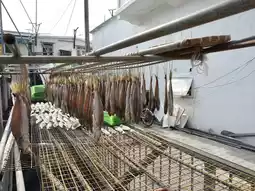 As we wandered through the village, the scent of dried seafood filled the air. Rows of salted fish hung from wooden poles, while large bamboo trays displayed an array of sun-dried delicacies waiting to be sold. Tai O Market Street was a sensory delight—lined with stalls selling everything from handcrafted seafood-based condiments to ceremonial offerings and unique jewelry made from shells and fishbones.