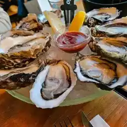 The restaurant's specialty is oysters, priced at $10 each during promotions, with different varieties available daily! Besides the signature oysters, we also ordered handmade pizza and crispy German pork knuckle! All the dishes were of high quality, the pizza had great cheese pull, and the pork knuckle was very crispy and pre-cut for the customers 😍. It was a very chill dining experience!