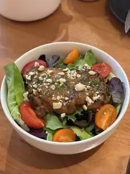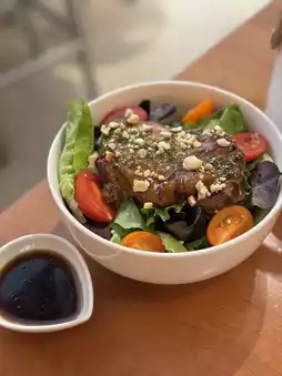 The salad has three sauces to choose from, I chose the grapefruit juice is more fresh 😙 The chicken steak is large and tender, moderately salty, I like it!