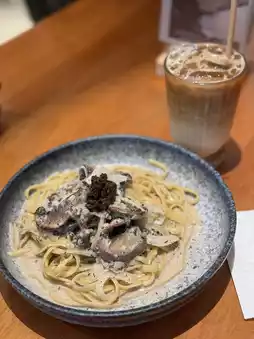 The pasta my friend ordered has a very fragrant black truffle pasta, but the brown mushrooms are not a big one as I thought, but cut into pieces 😆 However, the sauce is fragrant and creamy