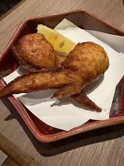 The fluffy chicken wings are stuffed with mints. They are crispy on the outside and have the texture of mints inside. They are spicy and quite tasty.
