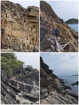 Located at the southern end of South Horizons, Mount Johnston and Ap Lei Pai are very famous in the hiking circle. Although the journey is not long, from Lei Tung Station on the South Island Line, climb Mount Johnston, go to the Ap Lei Pai Lighthouse, and return to the South Horizons Station via the Mount Johnston Kwan Bian, the whole journey is only 5.3 km; the climb is not much, the height of Mount Johnston is only 196 meters, and the total climb is 570 meters, but the road is not easy to walk, basically gravel roads and dirt roads (Figure 17), if you walk Kwan Bian, it is along the cliff edge of the reef (Figure 18-20), although the dangerous road section has ropes, it is a great challenge to the coordination and flexibility of the body. Overall, the difficulty is medium to high, the scenery is excellent, the fun is very high, very exciting, not suitable for beginners, old donkeys are very worth a trip.