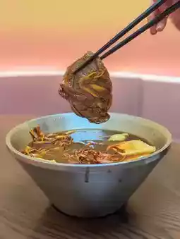 The noodles with knife are wide and chewy, and are very juicy🍜