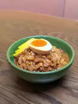 The pork belly is not too fatty and has an oily flavour. It is served with half a poached egg