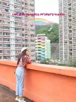Take a photo with the beautiful rainbow-colored staircase building at an elementary school in Hong Kong