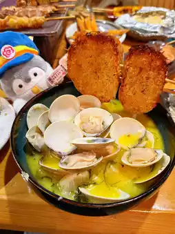 Garlic butter wine cooked mussels are also very good😍 Large pots of mussels are served in the original pot, full of freshness🤤 Each mussel is very full and fresh🌟 Butter flavor is strong and evil😈 Plus the matching buns to eat together, happy and satisfied☺️