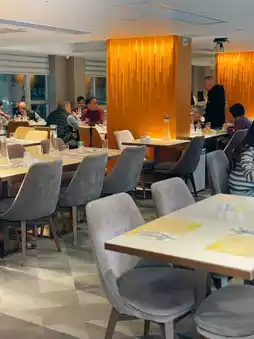 The seat spacing doesn't feel crowded, the tables are big enough to put food☺️