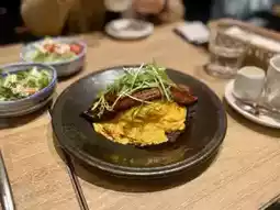 The tomato sauce is sweet, not too sour, the pasta is cooked just right, with a chewy texture, the salmon is medium rare, and it is thickly cut, it is worth a try.