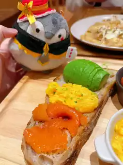 Of course, there is no shortage of Nordic unique Brunch board 👍 contains very rich food, sausages, scrambled eggs, avocado, salmon and large pieces of sour toast, at once to meet different taste needs, but also very healthy tim 😍 satisfaction burst ✅