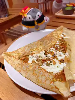 First tried a Crepe - Pistachio with peanut butter🥰 The crepe is crispy on the outside and soft on the inside🤤 It contains a lot of pistachio peanut butter, every bite is exuding the aroma of nuts, rich and sweet, the taste is excellent and reminiscent😚