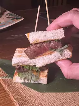 Crispy toast is sandwiched between Wagyu beef fillet, which is cooked to medium rare. It is very juicy and tender. The quality of the beef is very high, with a strong beef flavor, super delicious!