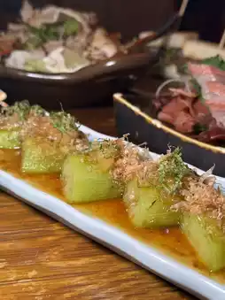 The eggplant is soft and sweet, and paired with the delicious barbecue sauce and shredded bonito, it tastes sweet and fresh.
