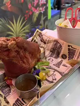 The portion of fried pork hands is really big, the taste is not too salty, crispy on the outside and soft on the inside, the meat is rich in juice, which makes people bite after bite. It offers three different sauces, one of which is like suckling pig sauce, which is too delicious to pair, sweet, and the bottom layer is covered with mashed potatoes and vegetables, which is really delicate and adds more flavor to the whole dish.