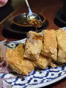It turns out to be fried bean curd roll, there is only one ingredient bean curd skin, the outer layer is super crispy fried bean curd skin, the inside is soft and chewy bean curd skin, super clever master's effort, taste fragrant and fresh, dipped in homemade soy sauce, super delicious
