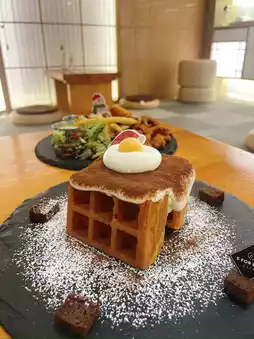 The waffles are made to order and have a crispy egg flavour