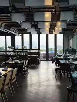 The restaurant is located on the 19th floor of the hotel with stunning sea views