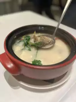 The yellow croaker soup in clay pot exudes a rich fish aroma, and the soup base is clear, yet full of the sweetness of the fish. The yellow croaker has a delicate texture that goes well with the flavor of the soup.