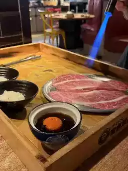 First, I ordered the Wagyu Sukiyaki, which was $98 and truly worth the price! Each portion came with two large pieces of Wagyu beef that melted in your mouth. They grilled the beef right in front of you, allowing you to enjoy the show while you savored it. Paired with Japanese rice and a black truffle and egg sauce, the resulting flavorful combination was incredibly rich and delicious.
