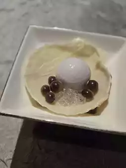 Jia Yingchun was abused to death by her ungrateful husband. The master felt like killing a mussel to get a pearl, so he came up with the dessert "Pearl ˙ Purple Sweet Potato". Mussels made from white chocolate, balls made from purple sweet potatoes and red beans, studded with white wine jelly grains and red bean popcorn, an interesting combination of Chinese and Western.
