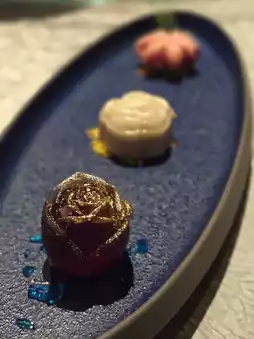The three cold plates, respectively, use peony, date mud yam cake and falling flower golden cake to compare Shi Xiangyun, Qin Keqing and Jia Xichun, respectively, all three are presented in the form of flowers. Peony flowers have the sweet and sour taste of Lotus flowers, which is refreshing and delicious.