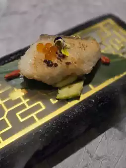 The shopkeeper served the fairy-like pan-fried sea salt white sturgeon, fried until the skin is tender, the fat is rich in white sturgeon, garnished with salmon seeds to freshen the body, even the presentation is meticulous.