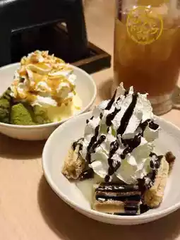 The matcha bracken cake is a bit chewy and paired with thick caramel cream, it feels sweet.