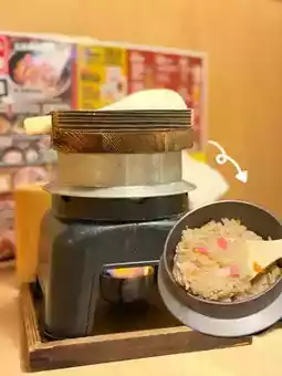 Kama Rice uses Hokkaido rice, which is very special. After it is served, light the fire to cook the rice, wait for 30 minutes, mix it well and eat it. The kamameshi has shredded chicken, shredded Naruto rolls, shredded carrots and shredded onions. It is recommended to pair it with skewers for a more satisfying experience.