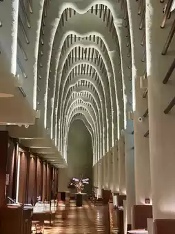 PARKSIDE has a very high ceiling and a church-like awe-inspiring decoration. The wood and beige bricks are very suitable for checking in. There are semi-circular booths, which are quite comfortable to sit in.