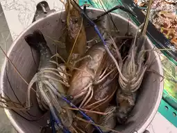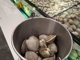 The U-shaped fish tank at the entrance is filled with lots of bacon, shrimp, mussels, crabs, snails..., all vibrant!