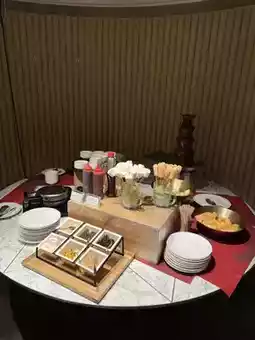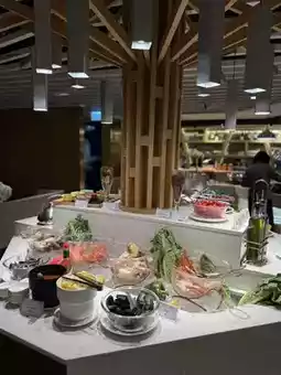 The barbecue area has skewers, and other cooked dishes include grilled beef, mussels, crab, medium, chicken, and pork ribs. The dessert area is ice cream, cake, Brownie, and chocolate fountain. Special recommendation for the chocolate fountain, where you can make your own chocolate fruit strings, fun and delicious! The drinks area has juice, coffee, tea, all you can drink.
