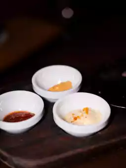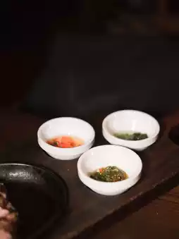 The steak also has 6 sauces for my place Personally like his green sauce ~