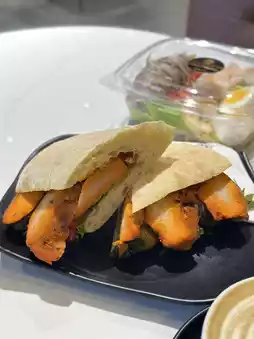 The sandwich is crispy on the outside and soft on the inside. The grilled chicken is full of spices and is very tasty. It is also sandwiched with eggplant, lettuce and yellow pepper. The filling is rich and full. It's quite big!