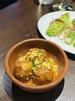 The chicken meatballs are served with traditional Spanish sauce.