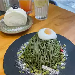 The combination of matcha and chestnut Mont Blanc waffles is intoxicating, with the bitterness of matcha and the sweetness of chestnuts perfectly balanced. The angel cream cake roll is light and soft, and paired with a glass of Sicilian lemon rock salt sparkling water, the refreshing taste makes the whole dining experience more pleasant.