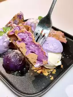 Order any hot food can be $ 38 additional, I did not expect the appearance is good, and this price is really worth eating, each waffle filling is purple sweet potato marshmallow, with a faint purple sweet potato flavor, marshmallow makes the whole waffle eat very smoky, next to also purple sweet potato, cream, ice cream, this price to eat cheap