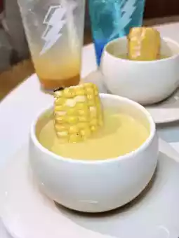 This corn soup is homemade, each bowl will have a piece of corn inside, the presentation is quite interesting, the soup is very fragrant corn flavor, drink you will eat corn
